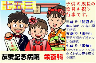 11月15日に、3歳、5歳、7歳の子供の成長を祝い、宮参りをする習俗。