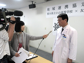 平成31年3月18日(月)15:00~、友愛記念病院と栃木県立小山高等学校とのインターンシップにおける「連携協定調印式」について共同記者会見を開催いたしました。