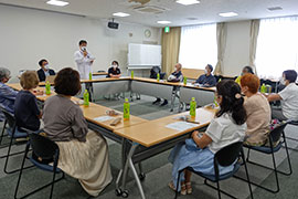 病院内ボランティア活動に必要な研修を行い、またボランティアの方々とスタッフの意見交換の場として、交流会もおこなっています。