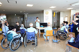 インストラクターの方にご指導いただきながら、入院患者さん7名が体験しました。